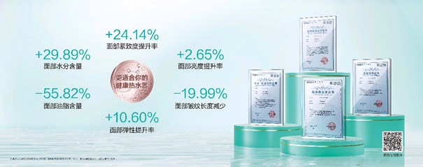 華帝“高透活肌科技”正是通過改變水分子團(H2O)n的結構及活性,賦予了沐浴水全新的特性,從而實現對肌膚的深層清潔、補水、抗皺提亮。28天真人專業測試結果顯示,連續使用華帝美肌浴熱水器30天后,受試者面部水分含量提升29.89%,油脂含量降低55.82%,緊致度提升24.14%,彈性提高10.6%,亮度提升2.65%,皺紋長度減少19.99%。
