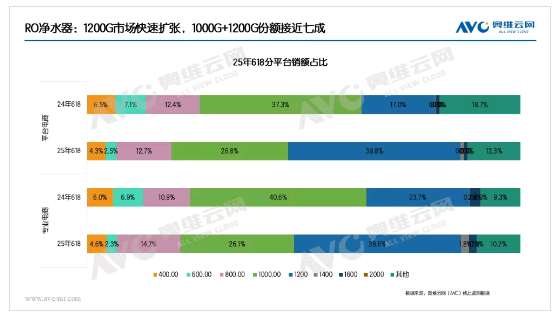 細分來看,純水機通量呈現持續增長趨勢。目前,1000G和1200G通量的主流產品占比接近70%,而1400G、1600G等更大通量產品的市場份額也在穩步提升,滿足消費者對更快制水速度、更大出水量的需求。
