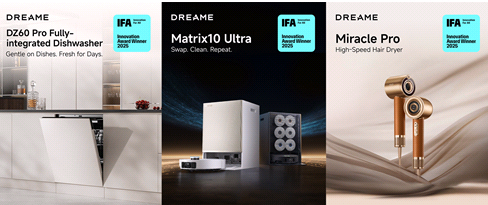 本屆IFA Innovation Awards中,追覓一舉拿下20+項榮譽,成為獲獎數(shù)量最多的品牌之一。其中,Matrix10 Ultra掃地機獲得“Best in Smart Home”;DZ60 Pro全嵌洗碗機榮膺“Best in Home Appliances”;Miracle Pro吹風機摘得“Best in Beauty & Personal Care”;此外,H15 Pro洗地機、Aqua10 Ultra滾筒掃地機、無線吸塵器V30、寵物空氣凈化器FP10、NAVO Elite 1 OutCam外置攝像頭與A3 AWD割草機等六款產(chǎn)品獲頒Honoree獎項。