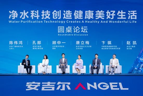 發布會上的圓桌論壇環節,安吉爾集團董事長兼總裁孔那、副總裁趙凱與營養師顧中一、科學家唐立梅、中糧食品感官與風味研究專家卞祺和主持人陳偉鴻圍繞“凈水科技創造健康美好生活”展開深度對談。
