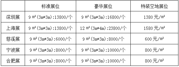 1、展覽收費:(雙開口標準展位加收10%)