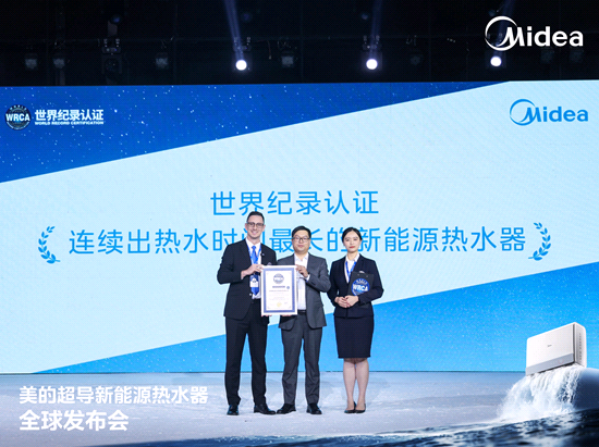 體積的縮小并不意味著容量的妥協。作為行業連續輸出水時間最長的熱水器,美的超導新能源熱水器在冬季進水溫度為23℃時,可提供超過100分鐘的持續沐浴時長;夏季進水溫度為28℃時,美的超導新能源熱水器能夠帶來無限續航熱浴新體驗,從根本上解決了多口之家的熱水焦慮,并因此獲得了世界紀錄認證官馬克西姆現場頒發的“連續出熱水時間最長的新能源熱水器”世界紀錄證書。