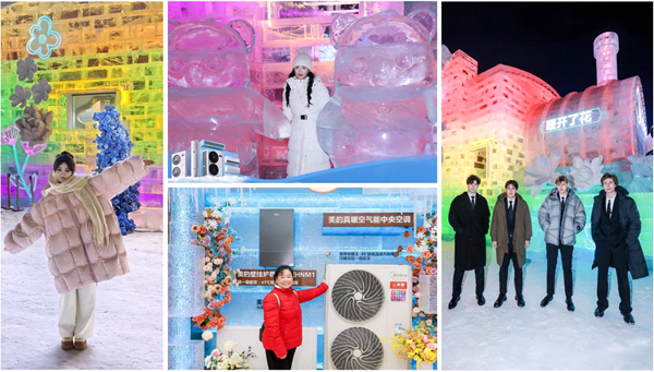 其中,“金馬影后”馬思純攜手美的中央空調(diào)研發(fā)總監(jiān)雷俊杰,在此開啟一場特別直播——車外是零下十幾度的凜冽寒風(fēng),車內(nèi)卻恒溫26℃、鮮花盛放,眾多游客與線上觀眾循著暖意而來,共同見證這場跨越50℃溫差的溫暖相遇。這場集結(jié)明星與行業(yè)專家的直播,不僅是冰雪大世界的特色打卡體驗(yàn),更用“科技+場景”的直觀呈現(xiàn),展現(xiàn)了家電品牌對冬日溫暖的全新詮釋。