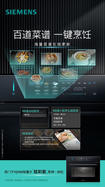 年末聚會和節日宴席常需在有限時間內完成多道菜式。為幫助用戶在準備年菜或聚會美食時更從容高效,西門子iQ500智魔方炫彩款蒸烤一體機搭載12.7英寸高精彩膜屏,以清晰圖文與直觀界面為核心,簡化操作路徑,讓復雜料理步驟更易掌控。高度集成的觸控設計,使用戶在蒸、烤、炸、燉等模式之間自由切換時更為流暢,也更適合多人協作場景,如家庭聚會或節日烹飪準備。